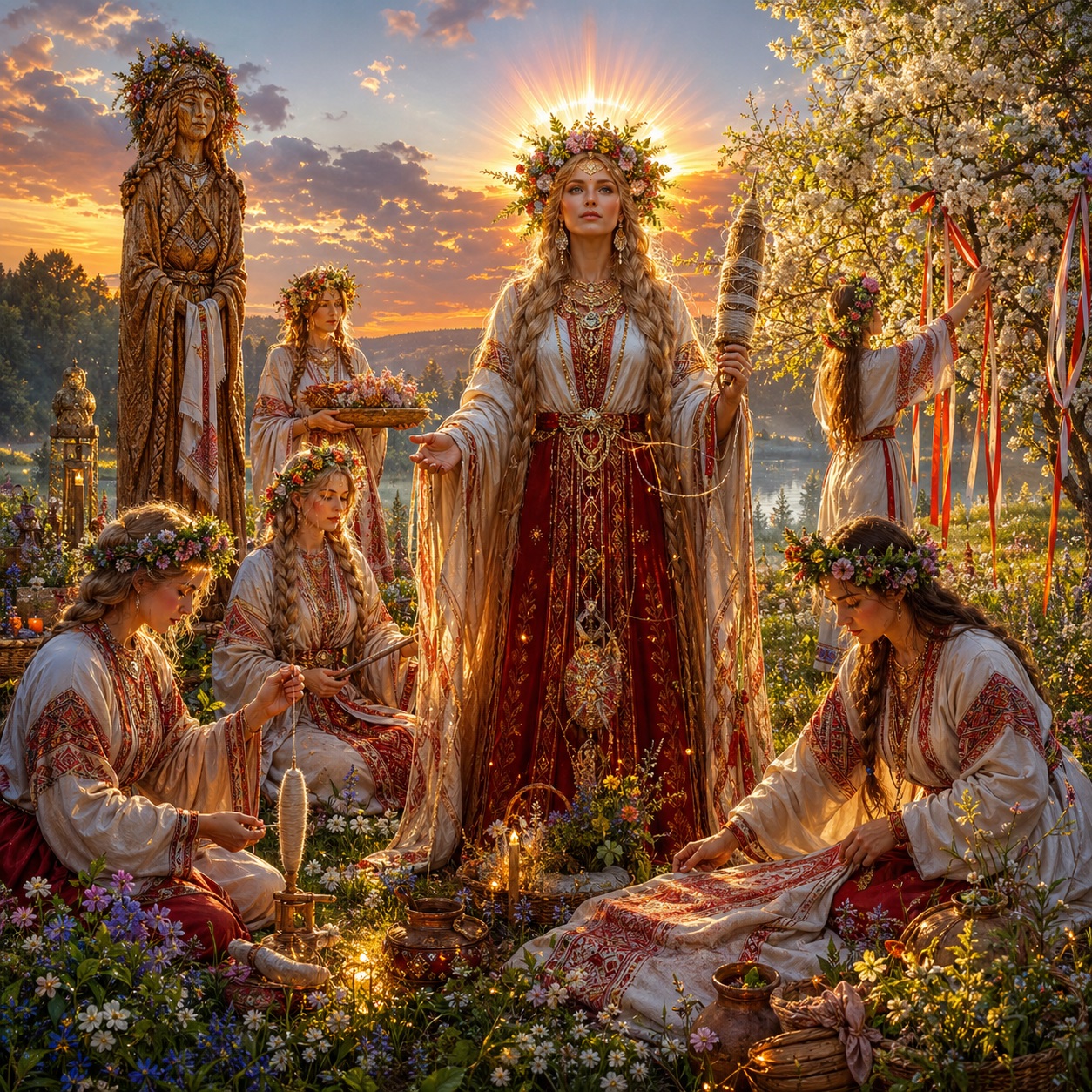 Не как “официального древнего праздника”, а как особой сакральной пятницы, где женская судьба, нить жизни, домашняя работа, земля и весенняя сила мира сходятся в одну точку.