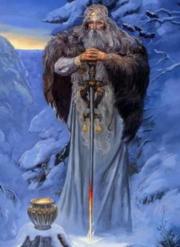 Сварог Сварог - первое воплощение на земле Бога Рода, первый и единственный его сын. Он изначально был рожден продолжателем дела Рода. Своей рукой метнул Сварог в Великий Океан волшебный Алатырь, который вырос в воде, превратившись в огромный бел-горюч камень, который вспенил Океан. Часть влаги загустела и превратилась в первую земную твердь. Сварог упорядочил созданный мыслью отца Мир, связал воедино ("сварганил"!) все его составляющие и наладил четкое взаимодействие вселенских законов. Сварог - Бог труженик. Его творящая сила - не магия, а методичный упорный труд. Сварог учит своим примером, что наиболее важные вещи можно создать только собственными руками, причем знАчимыми они должны быть не только для создателя, но и для всего рода. Как Бог единой Вселенной, он, с одной стороны, основа и опора материального мира, несущий ответственность за все, в нем происходящее. Однако имя его указывает на то, что и небеса находятся под его покровительством. Он владычествует над Славью - светлой частью Нави, где живут души наших Предков, а так же над Ирием - божественным садом. На санскрите "Сва" - это небо, "Свар" - Солнце, "Сварга" - Солнечная дорога, а "Сварог" - ходящий по небу. Такая широкая зона ответственности подразумевает владение абсолютно всей мировой информацией, поэтому Сварога часто изображали четырёхликим, смотрящим одновременно по всем сторонам света, видящим и слышащим всё происходящее в мире. Наиболее распространено его изображение в виде могучего богатыря во цвете лет. В мирное время - в рубахе изо льна и с кузнечным молотом в руках; в дни войн - в багряных или тёмно-лазурных доспехах, с мечом - двуручником исполинских размеров. Сварог является отцом богам - Сварожичам, богам первого поколения. Они родились из искр, высеченных из Алатыря молотом Сварога, и звали их Семаргл, Даждьбог и Стрый. Это случилось, когда Чернобог наплодил аспидов, врагов Света, и нужно было им противостоять. Сварог, мудрый отец и отважный воин, не мог допустить разгула темных сил на вверенной его защите территории, поэтому создал и призвал себе в помощь Род Сварожичей. Сварог - лидер во всем: и в светской жизни, и в духовной. Он - кузнец, владыка огня, который для славян всегда был символом жизни, тепла, очищения. Огонь - основа земного мира, воплощенный в физическом виде дающий жизнь Свет Инглии. Владеющий огнём - владыка самой жизни. Поскольку Сварог - повелитель огня, то устанавливая на капище деревянный его кумир, следует обить его металлом и позаботиться о присутствии на капище молота (лома), наковальни и открытого огня. В роли кумира может выступать и крупный камень, если нанести на него символы огня. По сути, любая кузня или горн - это уже Сварожье капище, открывшего железный век и научившего людей изготовлению и использованию железных орудий труда и оружия. Приемлемые звуки на капище - звон металла, стук молоточков и голос горящего пламени. Лучшая треба Сварогу - творог (однокоренное слово с именем Бога и означающее "сотворенный"), символизирующий небесные хлеба. У балтийских славян Сварог зовется Радогостом, в Словакии, Чехии и на Украине - Рарогом. Широко известное святилище Сварога есть в польском поселении Радогост. Когда-то на высочайшей вершине Кавказа, Эльбрусе, тоже был храм Всевышнего, с Алатырём-алтарём, а гору называли Белой Горой, Белиной, Бел-Алабыром. 