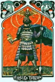 Чернобог (Злебог, Лютобог) стоит особняком в пантеоне славянских Богов. По сути – он ЕДИНСТВЕННЫЙ отрицательный персонаж, но зато какой! Настолько масштабный, что мало уж точно никому не покажется - ни простым смертным, ни даже величайшим из богов. Не стоит воспринимать Чернобога проклятием сотворенного мира: он всего лишь его обратная сторона. Или теневая. Есть научный термин, наиболее точно определяющий его положение в мире – антагонизм. Нет однозначной информации о том, где и каким образом он появился. Достоверной информации нет тем более. Но призвав логику, можно утверждать, что произошло это сразу после сотворения материального мира и появления света. Ибо как только Свет озарил материю, у нее появилась тень. И чем ярче свет, тем, в силу контраста, тень темнее. Возможно, в мире Нави, где мрак непрогляден, бродили тени самых низменных и потаенных желаний первых Сущностей. Они и породили свое общее дитя – воплощение сил, обратных по действию Силам Созидания и Света. А может быть, он вообще из другой реальности – в некоторых, наиболее древних источниках, говорится, что пришел он с изнанки нашего мира. Но вне зависимости от этого, Чернобог – божество тотального разрушения и абсолютного Зла. Он непобедим и непреходящ, пока существует мироздание. Его физическая сила так велика, а магия так сильна, что можно допустить – он уравновешивает силы Светлых Богов. Конечно, Чернобог не один, у него есть своя армия – армия Сил Тьмы. Он привел в этот мир Кощея, Вия и Горына Змеевича, создал аспидов, и все темные создания и духи Нави, вся ее нечисть – есть его воины. По мере осознания Чернобогом масштабов своей мощи и собственной сути разрушителя, он решает, что мира Нави ему: а) мало, б) все мироздание нужно разрушить и подчинить собственной воле. И когда ушло на покой дневное светило, под покровом тьмы принял Чернобог облик огромного Змея-василиска чудовищного вида. Черного, как ночь, с хвостом змеиным, но с человеческими головой, торсом и руками. Пожаловало с ним вместе и воинство его кошмарное, полное ненависти ко всему светлому и твердым намерением переустроить мир по-своему. Правда, учуял его Сварог и узнал, что Чернобог замышляет. И понял, что не одолеть ему в одиночку такие полчища огнедышащей нечисти. Тогда-то и создал он себе ратных помощников, Богов-Сварожичей – Даждьбога, Семаргла, Хорса да Стрыя (Стрибога). Дал им в помощь Финиста-ясного сокола и Рарога-сокола Победы, да еще множество других Светлых Сущностей. И началась великая битва, первая в сотворенном мире, называемая потому Изначальной. Долгой и жестокой была она, в какой-то момент Чернобог стал побеждать, наступать, заволакивая черным дымом Явь, и к Прави подбираться. Но придумал Сварог способ, как одолеть его. Выковал в небесной кузне огромный плуг и попросил Сварожичей помочь впрячь в него Змея. Из последних сил навалились они – Семаргл клещами огненными за язык Змея держал, Даждьбог булавой по головам охаживал – чтоб смирно стоял, а Стрибог тьму-власть змеиную развеивал, чтобы не было ему никакой поддержки и помощи. Совместными усилиями удалось-таки одолеть Змея, обессилел он. Попросил у Сварога свободы себе и пощады для своих детушек – народа Навьего. И тогда уговорились Сварог с Чернобогом разрешить спор на вечные времена, чтобы все и живы, и довольны остались. Поделили они Вселен
