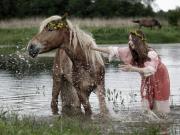 ... Летит по небу огненная колесница, и правит ею Ярила-Солнце, ослепительный, жаркий, в самой силе своей и мощи, ярый Солнцебог. На Земле под ним колосятся нивы богатым урожаем, и жнецы споро убирают созревший хлеб в снопы. Вот уж и пожинальник молча связали, и бороду Велесу древнему завили - всё, окончена жатва! Это значит - пришла пора Яриле уступить место в колеснице брату Хорсу, Богу Солнца зимнего. Спадает ярь летнего солнышка, уходит оно в тень, уступает место сдержанному осеннему; сменяет брат брата, переходят вожжи сменщику- вознице. Это значит - окончился текущий сезон, наступает следующий. Возница-то сменился, а кони в солнечной колеснице - бессменные. Неутомимо летят по небу, ни на секунду не замедляя своего бега, такие же труженики, как и земные кони, людские помощники резвые, кони гнедые да буланые, всех видов и мастей, во всех делах напарники. И в поле пахать, и на ратном поле воевать, и товары возить, и хлеб молотить, и детишек в санях катать. С конями была связана вся жизнь наших предков, даже представить невозможно, где бы это благородное животное было бы лишним. Нигде, наверное…) Вот и считают издревле день Хорояра лошадиным праздником. Почитая солнечных братьев-возниц, воздают должное и верным коням. Стараются весь день посвятить им: искупать в реке быстрой, расчесать да заплести гривы, украсить их лентами и цветами, святой водой окропить. И показать их во всей красе - устроить обрядовые конные состязания, по поведению лошадок да по следам подков погадать на будущее. Насколько древний и любимый этот лошадиный праздник, свидетельствует один интересный, хотя и печальный факт. Будучи на начало XIX века уж два тысячелетия как охристианенными, калужские крестьяне по "старой памяти", вывернутой церковью буквально наизнанку, приносили коня в жертву "какому-тоХорояру языческому"…