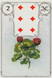 Две музыкальные божьи коровки подтверждают положительный настрой карты. Если включить фантазию, то можно увидеть изображение креста в листе клевера, причем не только христианского, но и кельтского. Крест является оберегающим и защищающим знаком.