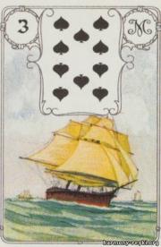 Если выпала карта «корабль», значит, вас ждет успех во всех ваших начинаниях, возникновение новых перспектив и планов, возможностей. Также возможны благополучные путешествия, появление новых ощущений, которые впоследствии привнесут значительные изменения в вашу жизнь.