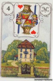 Описание карты: дом окружен великолепным цветущим садом. В древности дом считался центром всех проводимых встреч, переговоров, праздников. Является символов внутреннего благосостояния и стабильности. В этом доме всегда рады гостям, в окнах не гаснет свет, там собирается вся семья.