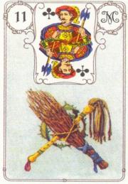 Описание карты: на ней изображена метла, которая несет в себе плохое настроение, недовольство, разногласия, как семейные, так и личные ссоры и обиды. Пересекается метла с кнутом, который имеет господствующий и агрессивный характер. Как мы видим, на карте изображен мученик, который держит в руках два этих предмета.