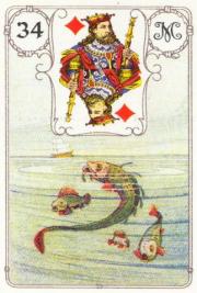 Описание карты: в самом центре карты указаны рыбы, которые купаются в маленьком озере. Они символизируют богатство, высокий заработок, а также является талисманом.
