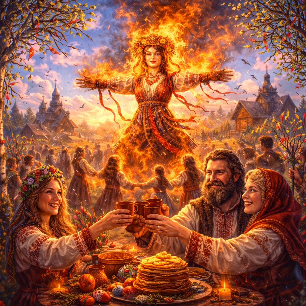 В старых культурах пища никогда не была просто пищей. Всё, что съедается в переходные дни, несёт смысл. Хлеб, блины, зерно, мёд, молочное, тёплая еда, общий стол — это не бытовые детали, а язык, через который человек разговаривает с циклом года.