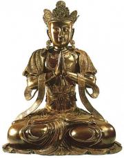 Гуань-инь почитается в китайском буддизме как богиня милосердия и сострадания. Гуань-инь - ипостась бодхисаттвы Авалокитешвары, божество, спасающее людей от всякого рода несчастий и опасностей, покровительница детей и женщин, целительница и родовспомогательница. Гуань-инь глубоко чтима не только в Китае, но и в Японии, Корее, Малайзии, а также среди буддистов во всем мире. Статуэтка Гуань-инь является одним из талисманов фэн-шуй. Гуань-инь изображают в разных обликах. Часто она предстаёт с одиннадцатью ликами, четырьмя или восемью руками или же тысячерукой. У тысячерукой Гуань-инь на каждой ладони есть око - символ того, что бодхисаттва одновременно видит всех, кто находится в беде, и спасает их. Обычными атрибутами Гуань-инь являются кувшин с ивовой ветвью, верёвка (символ избавления от бед), священная книга, чётки, посох, юбка из шкуры тигра (символ бесстрашия). Гуань-инь может изображаться стоящей на драконе или сидящей в позе лотоса. Рядом с Гуань-инь часто изображаются двое детей. Это ее ученики - девочка Лун Ну и мальчик Шань Цзай. Древняя легенда гласит, что некогда одним из воплощений Гуань-инь была благочестивая царевна Мяо Шань. Отец Мяо Шань был жестоким человеком, яростно противившимся её желанию стать монахиней. Он принуждал дочь выйти замуж, но она неизменно отказывалась и просила отца позволить ей уйти в монастырь. В конце концов отец разрешил ей жить при храме, но велел давать ей самую тяжелую работу. Трудолюбие и доброта Мяо Шань были столь велики, что животные, жившие близ храма, стали помогать девушке выполнять данные ей поручения. Однако даже чудеса не могли склонить отца Мяо Шань к милосердию, и он приказал убить её. Попав в преисподнюю, Мяо Шань увидела ужасные мучения, которым подвергаются после смерти живые существа, и преисполнилась сострадания к ним. Своими молитвами она освободила множество страдающих душ. Святость и чистота Мяо Шань преобразили мрачную загробную обитель в дивный райский сад. Божества преисподней, видя, что их власти приходит конец, устрашились и взмолились к Будде, чтобы он не допустил разрушения царства мёртвых. Тогда Будда воскресил Мяо Шань. Возвратившись на землю, она поселилась на Горе Благоухания. Вскоре после этих событий отец Мяо Шань ослеп. Некий монах сказал ему, что его можно исцелить, если приготовить лекарство из глаз и рук человека, который не знает, что такое гнев. Когда Мяо Шань узнала о болезни отца, она тотчас сама предложила свои глаза и руки. Отец Мяо Шань исцелился, не зная, кому он обязан избавлением от болезни. Он решил отыскать своего благодетеля и лишь тогда узнал, что это его родная дочь пожертвовала собой ради него... Отец Мяо Шань просил прощения у неё и искренне обратился к добру. Когда это случилось, к девушке возвратилось зрение. Гуань-инь - олицетворение бесконечного сострадания, заботы, любви. К ней обращаются все те, чья работа связана с опасностью. Ей поклоняются как милостивой покровительнице моряков и рыбаков, спасительнице во время бурь и кораблекрушений, защитнице путешественников. Гуань-инь хранит от бед, исцеляет от болезней, благоприятствует зачатию ребенка и счастливому браку. Она помогает во всех повседневных делах и нуждах. Изображения Гуань-инь с древности помещаются в домах в качестве талисмана. Статуэтка Гуань-инь защищает семью от бед и недугов 