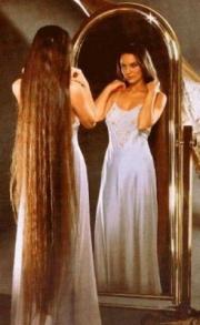 При помощи волос можно и увидеть в зеркале свою половинку. В понедельник или пятницу, после заката солнца, встаньте с распущенными волосами перед большим зеркалом. Желательно, чтобы волосы были достаточно длинными, и прикрывали лицо, или хотя бы глаза. Расчесывайте волосы, стараясь ни о чем не думать. Таким образом, вы войдете в состояние, подобное трансу, а в зеркале начнут появляться образы. И среди них вы и увидите своего суженого.