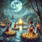 Купальская ночь считалась волшебным временем, когда вода, огонь и растения наделялись особой силой. В это время девушки гадали на суженого, пытались узнать свою судьбу, а семьи проводили обряды, привлекающие достаток и удачу.