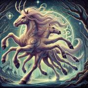 Слейпнир — это не просто конь, а магическое существо, символизирующее путешествие между мирами. Он мог перемещаться между Асгардом, Мидгардом и Хельхеймом, что делало его проводником между жизнью и смертью.