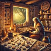 - Нательные обереги (из дерева, металла): мастер (кузнец, резчик) делал заготовку, вырезал символ, шлифовал. При этом мог произносить тихие заговоры, обращённые к богам или духам.