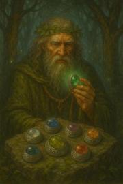 Считается, что друиды использовали камешки или кристаллы в гаданиях, раскладывая их на «священной тряпице» или в круге, сопоставляя со знаками огама (хотя прямая археологическая основа этому слаба, это реконструкция). Также могли класть определённый камень на алтарь при ритуалах (например, зелёный камень для плодородия, прозрачный – для ясновидения). Так постепенно рождалась легенда о «камнях силы».