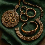 Торк с тремя узлами — княжеская ветвь, с двойным завитком — бардовский, финишная спираль — клан кузнеца. Бронза позволяет менять толщину без потери прочности, значит можно прописать кодекс рода в самом дизайне. Украшение как штабной штрих‑код, мгновенная дипломатия на рынке медовухи.
