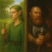 Их часто смешивают с дварфами, но грань тонка. Тёмный альв — это инженер ночи, наследник термоядерной избыточности. Он ниже человека, кожа серо-дымчатая, глаза зрачком в зрачке — двойная линза для работы в полумраке. Они презирают солнечный свет, но обожают жар горна.