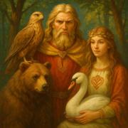 Медведь-чёрнолапый ходит по котловой тропе и держит жар собственной кузни. Если медведь легонько хлопнет вас снами о раскалённом железе, ждите: жизнь отдалит комфорт, заставит ковать характер. Удрал — Сварог отключает защиту, и мир жарит без фильтра.