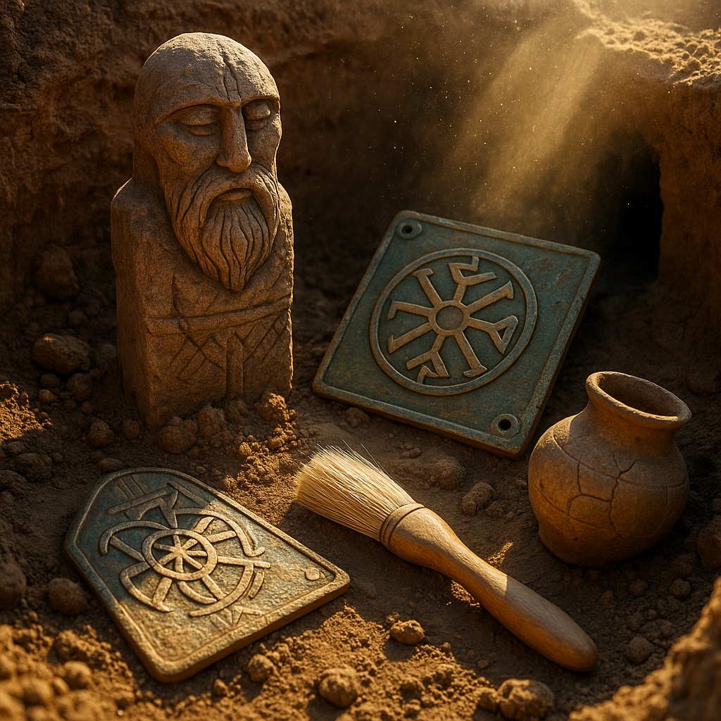 Каждое лето археологи осторожно, как хирурги, снимают лопатой кожу земли. Каждый черепок, каждая обугленная дощечка — это смятое письмо из дохристианского времени. Одни уверяют: «Письма пусты, всё придумали летописцы». Другие спорят: «Пыль и зола — первое, что слышит бог». Где же истина? Раскапывая сотни курганов, капищ, городищ, мы собираем мозаику, из которой вырастает не гордый храмовый фасад, а растрёпанные портреты: Перун с медными бровями, Велес с деревянным ухом, Макошь из печной глины.