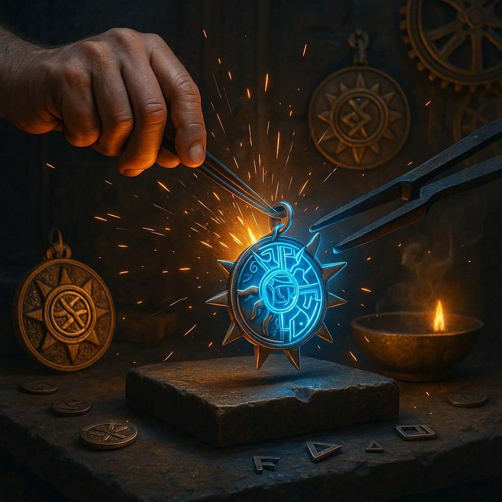 Церемония выглядит зрелищно: амулет кладут в дымящий кубок, обсыпают солью с углём, читают заговор — смесь церковнославянского и техно-арго. В печи рядом ревёт плазменная горелка. Публике внушают: «Ваш талисман переродится». На выходе — тот же зуб, но прорезан лазером, внутри — NFC-чип, передающий мантру на смартфон. Вы довольны: вещь будто родилась заново. Но задумайтесь — чья здесь душа: ваша или чипа, рекламой нафаршированного?