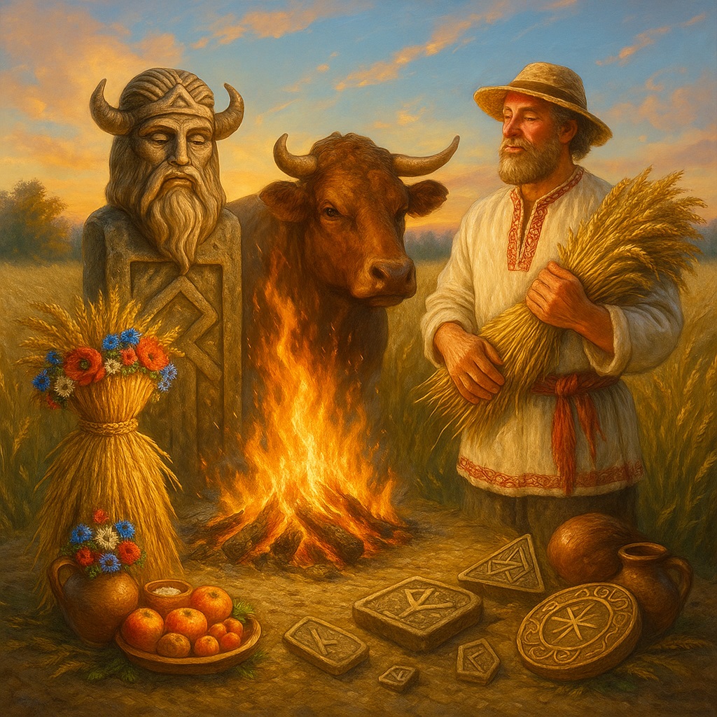 Велес—бог скота, дола, богатства и тёмной грани знания—обычно скрывается между корнями и мохом. Но раз в году, в самый упругий перелом лета, он выходит в поля в облике рослого пахаря с серпом из рога быка. Славяне называют этот день «Днём снопа»: момент, когда первый золотой пучок колосьев падает под нож и посвящается мохнатому властелину подземных сокровищ. В 2025 году церемония совпадёт с субботой, а значит — с максимумом выходного людского рвения. Приготовьтесь: грядёт праздник, который пахнет хлебом, дымом костра и чуть-чуть — гулким барабаном древней тревоги.