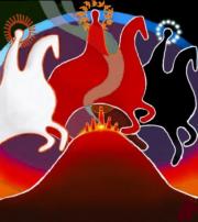 Но не только молодёжь гуляла на Красную Горку. Ведь это день, когда Семаргл Сварожич даровал людям огонь, а Сварог от себя передал им в дар орудия полевые и оружие ратное, инструменты кузнечные да кузнечному ремеслу обучил. Возжег Огнебог костер, сложенный из хвороста на высокой горе, и запылал он красным пламенем, окрасив вершину сполохами огненными.