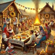 - Угощения и декор: стол можно украсить скатертью в славянском стиле, подснежниками (если есть), самоваром, медом, вареньем, сметаной.