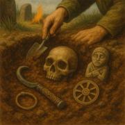 Сохнет глина, трескается, и в каждом расколе — шёпот мёртвых богов. Археолог поднимает черепок, сдувает тысячелетний прах и вдруг понимает: христианская свеча здесь зажглась гораздо позже, чем мы привыкли думать. Земля откровенно демонстрирует — язычество не ушло, оно затаилось, как зверь в тени, и ждало, пока мы станем достаточно смелыми, чтобы снова его услышать.