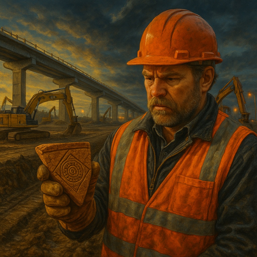 Когда экскаватор опускает ковш в землю, никто не ожидает, что вместо глины он поднимет… кусочек глины обожжённой тысячу лет назад. Обычный на вид черепок, но с едва заметными знаками. Для строителей — мусор. Для археологов — сенсация. А для тех, кто знает силу символов, — оберег, способный остановить технику и заморозить стройку века.