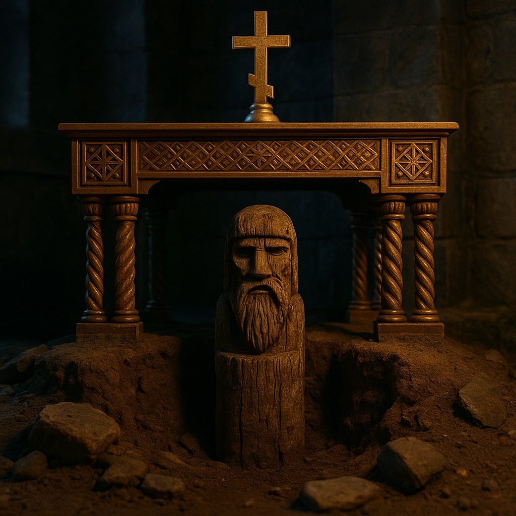 Под алтарями первых храмов археологи нередко находили то, о чём стараются не писать в учебниках: деревянные идолы, каменные головы, следы жертвенных костров и рунические символы.