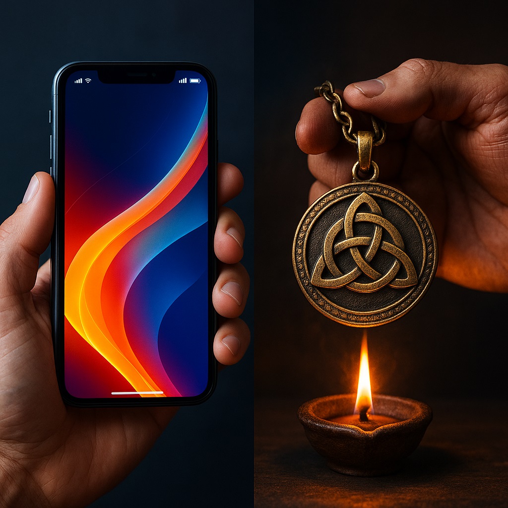 Представьте ладонь: на большом пальце блестит кольцо с кельтским узором «трикетра», на запястье — умные часы, синхронизированные с айфоном. Одно обещает «завязать» судьбу в бесконечный поток гармонии, другое — связать вас со всем миром за долю секунды. Оба узла — лишь символы, пока мы не впустим их в кровь. И тогда начинается битва: кто крепче удержит наше будущее — бронзовый виток древних друидов или стальной кабель зарядки?