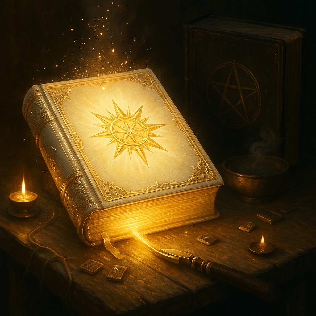 Книга Теней держит ведьмыны корни в сырой земле ошибок. Но без листвы корни гниют. Книга Света — это крона из страниц, развёрнутых к небу. Пустите несколько листов света в вашу колоду — и увидите, как росток ритуала перестаёт питаться только навозом страха и тянется к невидимому заряду радости. Время спорить, составлять свои протоколы света, серпом эго срезать лишнее сияние и печатать новую традицию, пока чернила тёплы, а солнце — даже зимнее — всё ещё отвечает на крик пера.