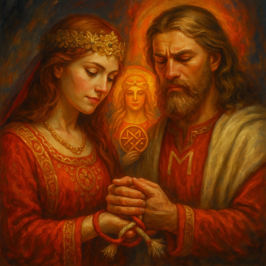 Считалось, что каждый союз мужчины и женщины освящён богами. Сам Перун дарил силу мужу, сама Лада — жене, а вместе они устанавливали в доме «лад». Брак был не просто юридическим актом, а священным ритуалом, объединяющим два рода и две души.