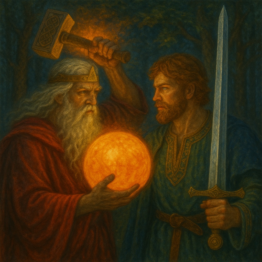 В древних мифах нет мелочей. Каждое оружие, каждая деталь доспеха богов — это не просто предмет, а символ. Именно он несёт энергию, рассказывает о сущности бога, его предназначении и месте в пантеоне. У славян и западных балтов мы встречаем два ярчайших артефакта: молоток Перуна и меч Святовита. Один — олицетворение грома, удара, решительного мужского импульса. Другой — знак власти, порядка и судьбы целого народа.