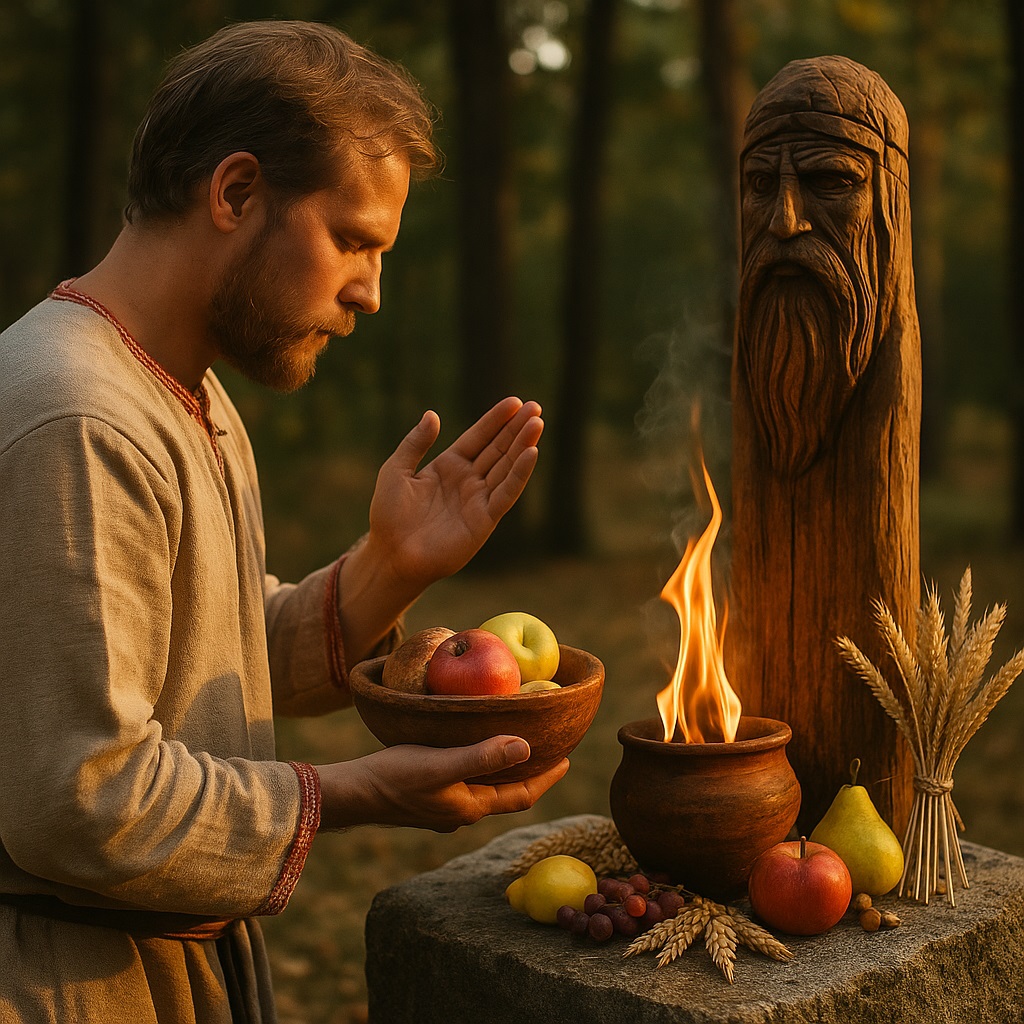 В прошлом обряд благодарности не всегда проводился лично. Были жрецы — те, кто знал, как правильно, когда, каким богам и в каком порядке. Они вели народ в ритуале. Их задача — сохранить чистоту обряда.