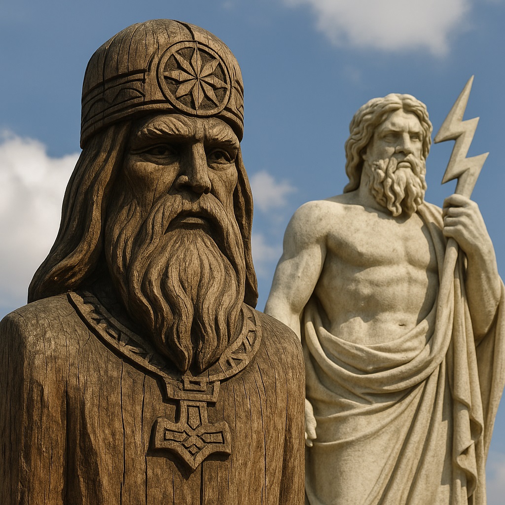 Некоторые учёные даже выдвигают гипотезу: Перун — более «военная» версия Зевса, сохранившая суровость первоосновы, тогда как греческая культура смягчила образ, добавив ему отцовские и политические черты.