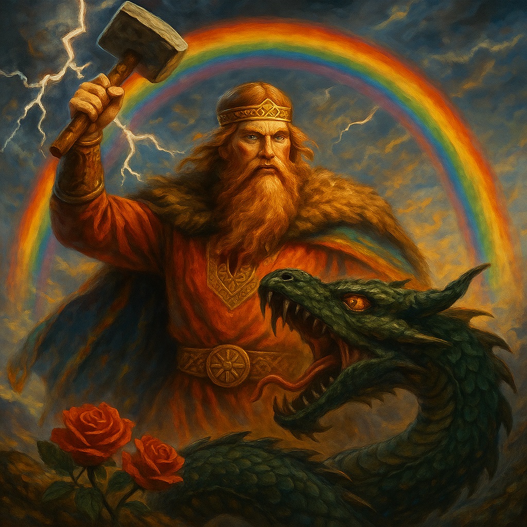 Когда гром раскалывает небо, а над ливнем вдруг рождается радуга — древний человек знал: Перун снова победил змея.