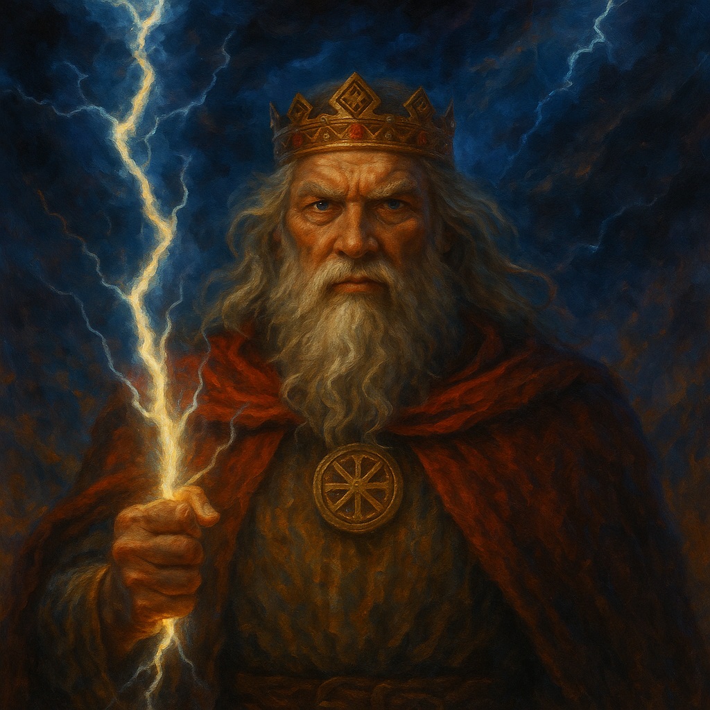 Перун — бог грозы, молний, военной доблести, справедливости. Его называли защитником рода, хранителем правды и карателем лжи. Он вечно противостоял Велесу, богу тьмы и хитрости.