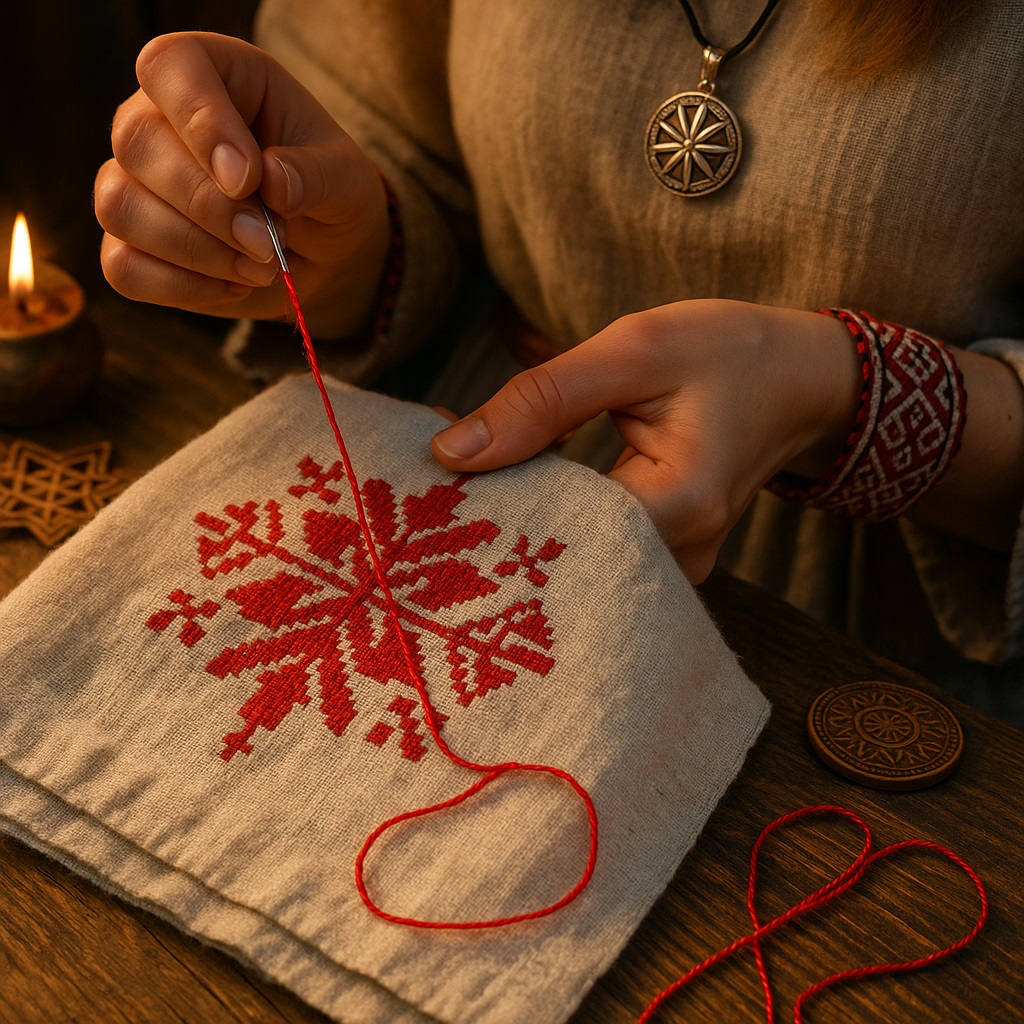Вышивая эти символы, женщина словно говорила миру: “Мой дом защищён. Мои дети под небом Перуна. Моя кровь священна.”