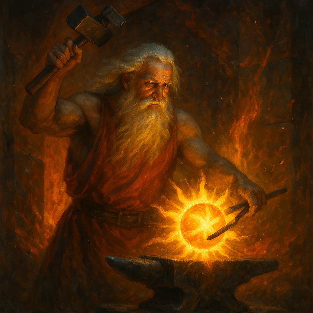 Если верить древним сказаниям, Сварог однажды ушёл в небесную кузню на много веков, чтобы выковать новый солнечный диск — потому что старый был повреждён в битве.
