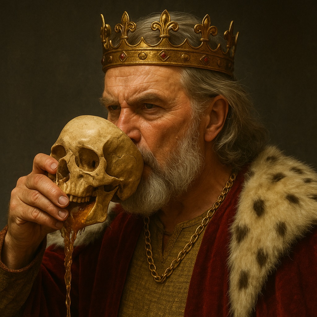Почему же именно череп? Почему не кубок из золота, не рог, не керамика? Потому что в нём — суть победы. Потому что когда ты держишь в руке остатки врага, ты словно забираешь его силу. Это не банальный трофей — это ритуальный сосуд, наполненный смыслом, страхом, славой. Череп становился символом полного доминирования, финальной точки, которую невозможно переписать. И каждый глоток из такого сосуда — не просто пиво, а обещание: "Я — победитель, и ты мне — ничто".