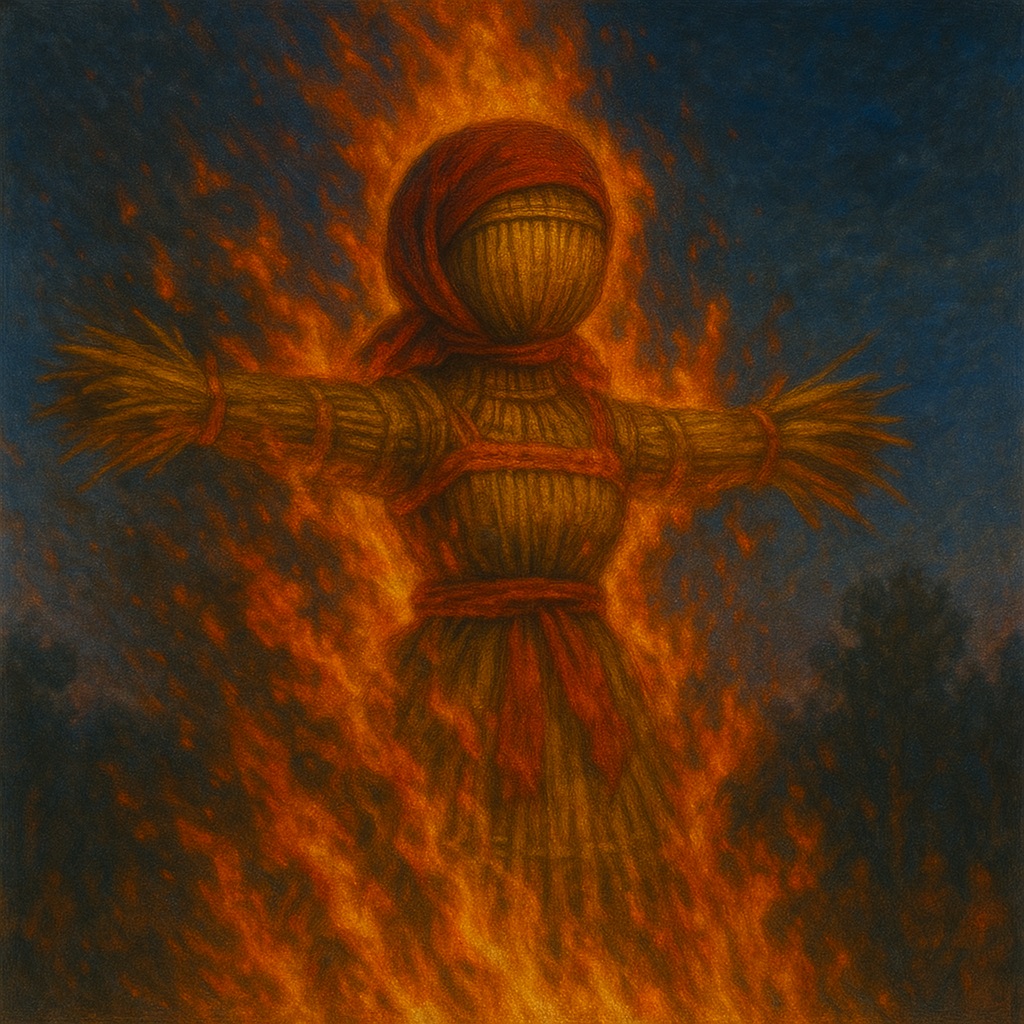 Кто из нас не видел, как на весенних площадях, под радостный смех и звуки свирелей, толпа бросает в огонь огромную куклу — соломенную женщину с ярким лицом, в платке и сарафане?