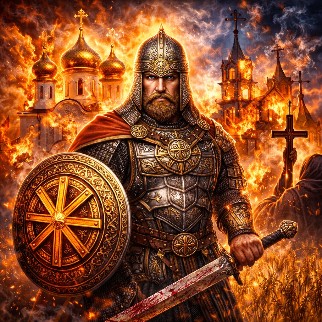 Именно поэтому он может защищать Русь как святыню, но при этом быть не церковным человеком в узком смысле, а человеком более древнего кода. Он защищает не только алтарь, а мир, в котором алтарь стоит.
