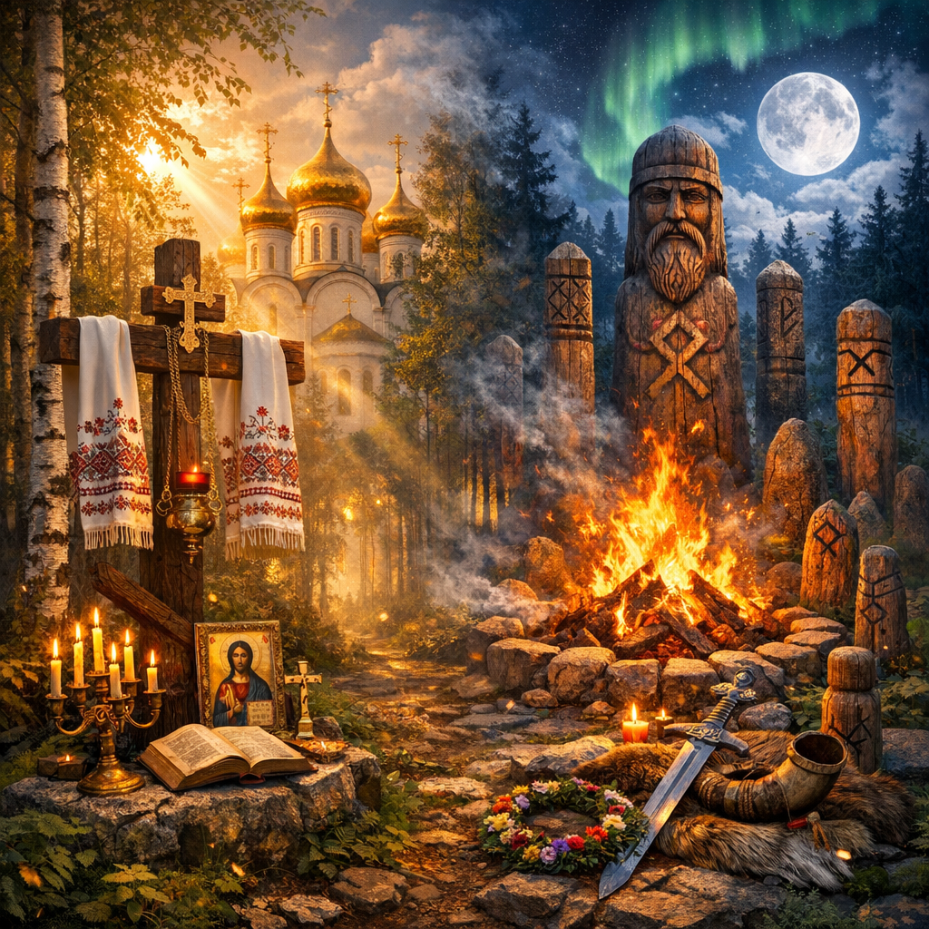 Спор о границе между православием и древней верой предков обычно сводят к примитиву: «крест против капища», «икона против идола», «церковь против леса». Но так спорят те, кто не смотрел в корень. Настоящая граница проходит не по символам и даже не по календарю. Она проходит по власти над человеком: кто определяет, что свято, что стыдно, чего бояться и за что просить прощения.