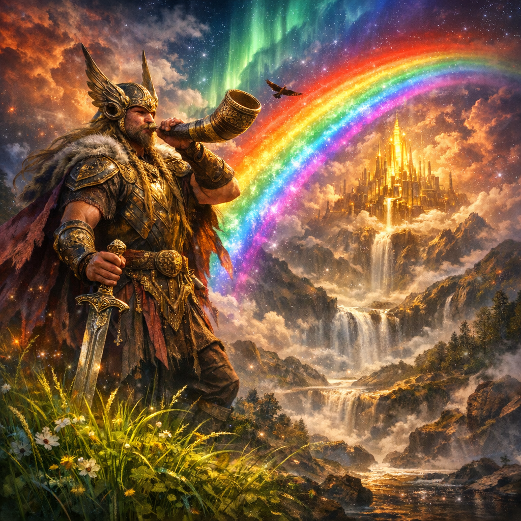 У Хеймдалля есть вещь, от которой мороз идёт по коже даже у тех, кто далёк от мифологии, — рог Гьяллархорн. Он прозвучит, когда начнётся Рагнарёк. Важно: не «когда Хеймдалль захочет», не «когда асы решат», а когда неизбежность станет фактом. И тогда он обязан трубить.