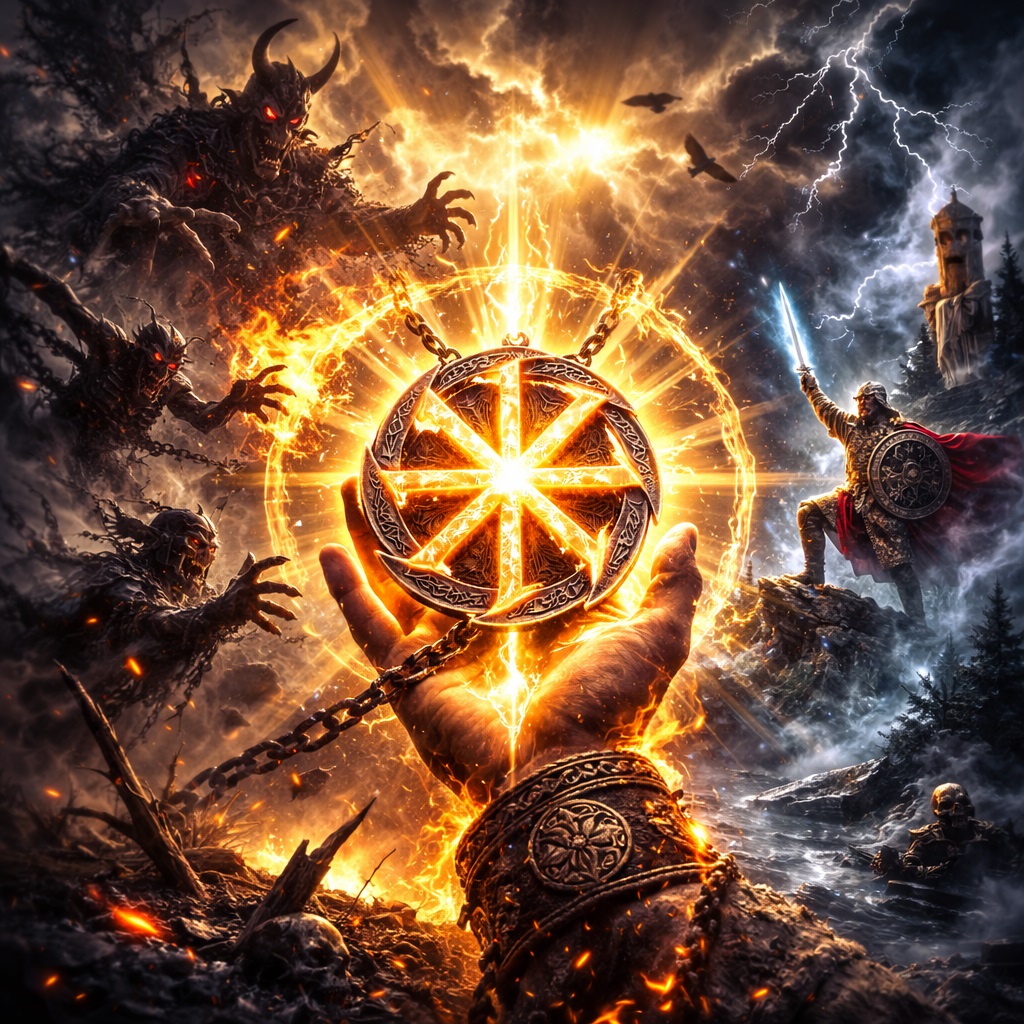 Коловрат защищает от тьмы не как магический щит, а как символ движения света. Он напоминает о цикличности жизни, поддерживает внутреннюю устойчивость и удерживает человека в состоянии силы. Там, где есть движение, тьма не может закрепиться. И пока человек помнит об этом, символ продолжает работать.