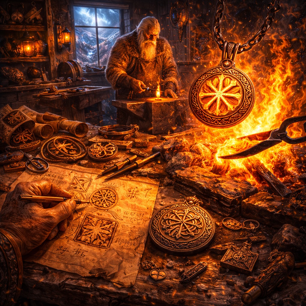 В мастерской Брокка путь начинается именно со смысла. С вопроса: что это за изделие? Для кого оно? Что оно должно нести? Это украшение силы? Личный символ? Подарок со значением? Родовой оберег? Знак защиты? Память о пережитом этапе? Символ мужества, воли, солнца, рода, Велеса, Перуна, Макоши, рунического пути, чертога, древнего культа или личной внутренней клятвы?