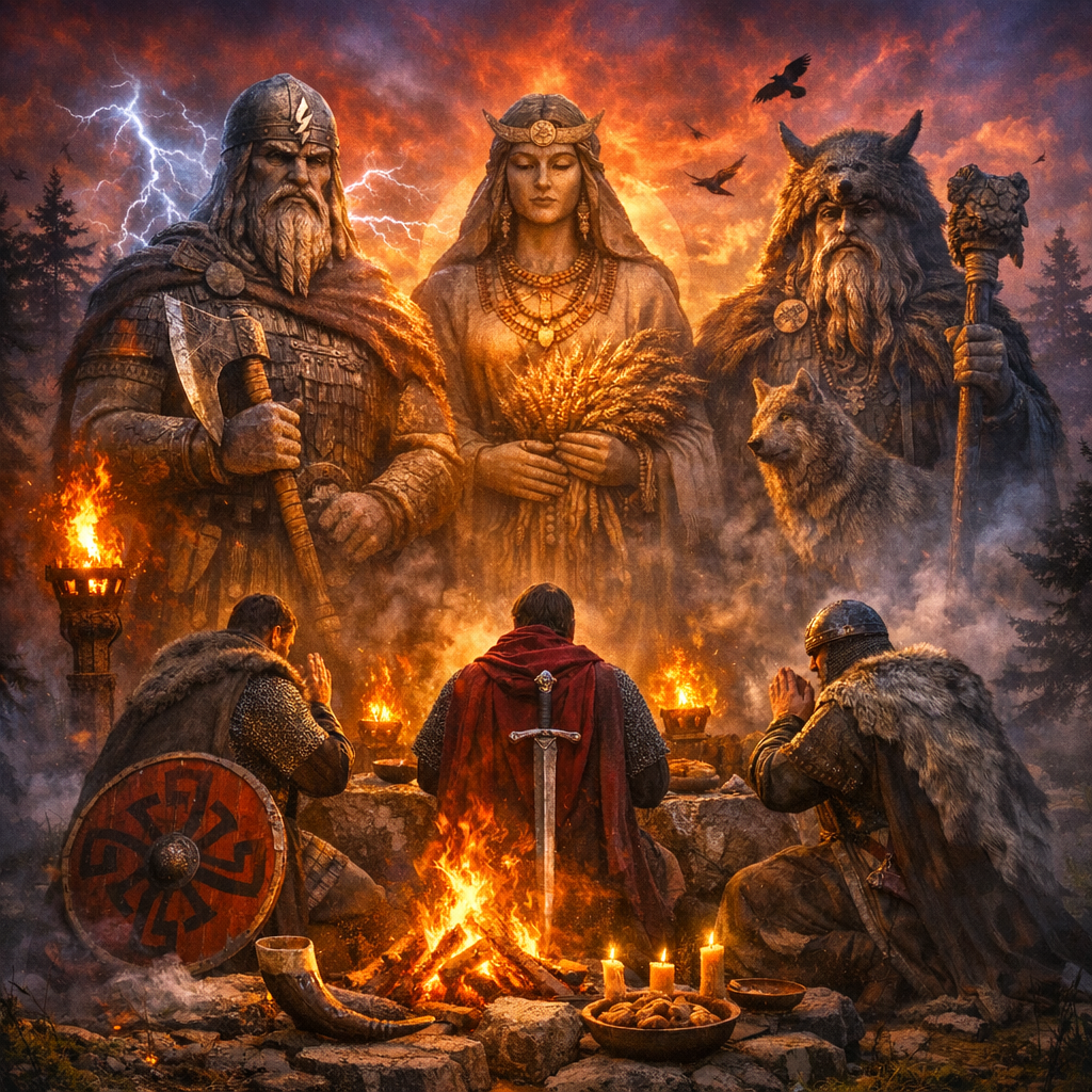 Но славянская картина не сводилась к одному имени. Воины могли обращаться к Роду и предкам — потому что страх сильнее, когда ты один. А когда за спиной «весь род», тебе проще стоять. Важны были и клятвы: нарушить клятву — значит потерять не только честь, но и защиту «верхнего» мира.