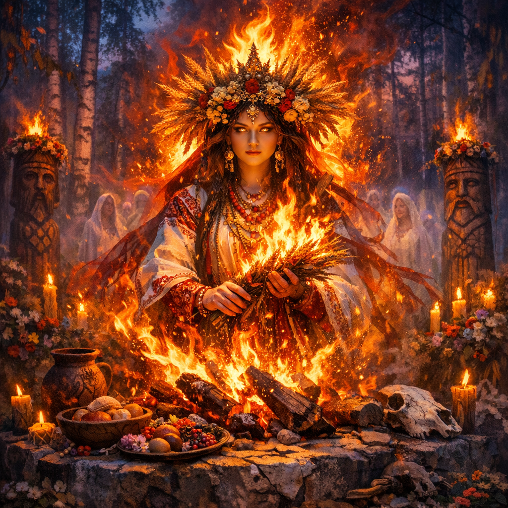 Но если говорить честно, женский образ здесь не случайность. Он связан с тем, что традиция говорит о плодородии, земле, цикле, рождении. О том, что даёт жизнь — и забирает силы. И да, в этом есть жёсткость: всё живое платит. Кто не хочет платить — остаётся в иллюзиях.