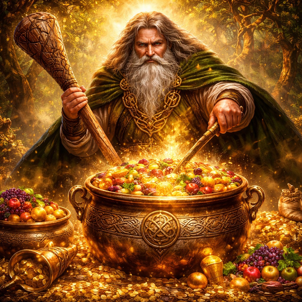Это особенно важно для читателя, привыкшего к современному языку “притяжения изобилия”. Дагда не про халяву. Его полнота не сводится к бездумному изобилию без цены. Напротив, вся его фигура показывает, что настоящая полнота держится на власти, силе, ритме и способности удерживать порядок. Encyclopedia.com подчёркивает, что Дагда выступает именно как податель, кормилец и обеспечитель общего достатка.