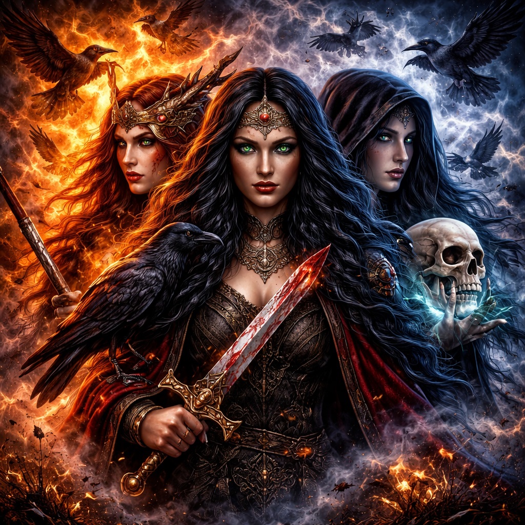 Вот почему Морриган так важна. Она не “богиня войны” в простом, почти школьном смысле. Она не просто любит битву. Она знает, как война входит в мир. Как она поднимается из страха, гордости, жажды славы, права на землю, мужской одержимости и той тёмной зоны человеческой природы, где кровь уже почти становится судьбой. И именно поэтому Морриган так часто оказывается трёхликой. Не потому, что древние любили красивую мистическую цифру, а потому, что одна голова для войны слишком мала. В ирландской традиции она действительно часто мыслится как одна из трёх сестёр или как фигура, чья тройственность проявляется через связку Морриган, Бадб и Маха, а иногда через иные комбинации. При этом современные обзоры подчёркивают, что её “тройственность” в источниках непоследовательна: Морриган может выступать и как отдельная богиня, и как собирательное имя для целой троицы.