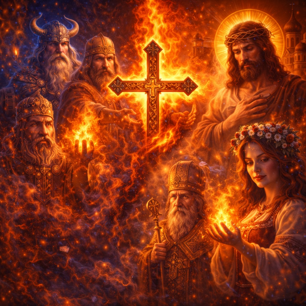 Когда говорят о крещении славянских земель, часто рисуют слишком удобную картину. Вот было язычество. Потом пришло христианство. И старые боги исчезли, будто их просто смели с карты мира, как пепел со стола. Красиво, просто, удобно для учебника. Но история никогда не работает так чисто. Особенно там, где дело касается веры, памяти и образов, которые веками жили не в книгах, а в крови народа, в языке, в календаре, в земле и в страхе перед лесом, бурей, зимой и смертью. Именно поэтому христианство смогло разрушить капища, сбросить идолов, запретить обряды, переписать праздники, но не смогло до конца уничтожить богов. Потому что боги жили не только в статуях. Они жили в самом способе видеть мир. И пока этот способ жил, боги продолжали существовать — пусть уже под другими именами, в других формах и даже в отрицании.