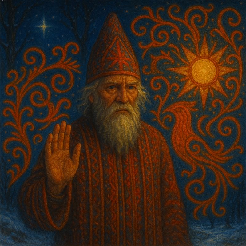 Коляда — это воплощение света, ещё не родившегося, но уже стучащегося в мир. Он уязвим, но могуществен. Он ещё не солнце, но уже не тьма. Это мгновение баланса между хаосом и порядком.